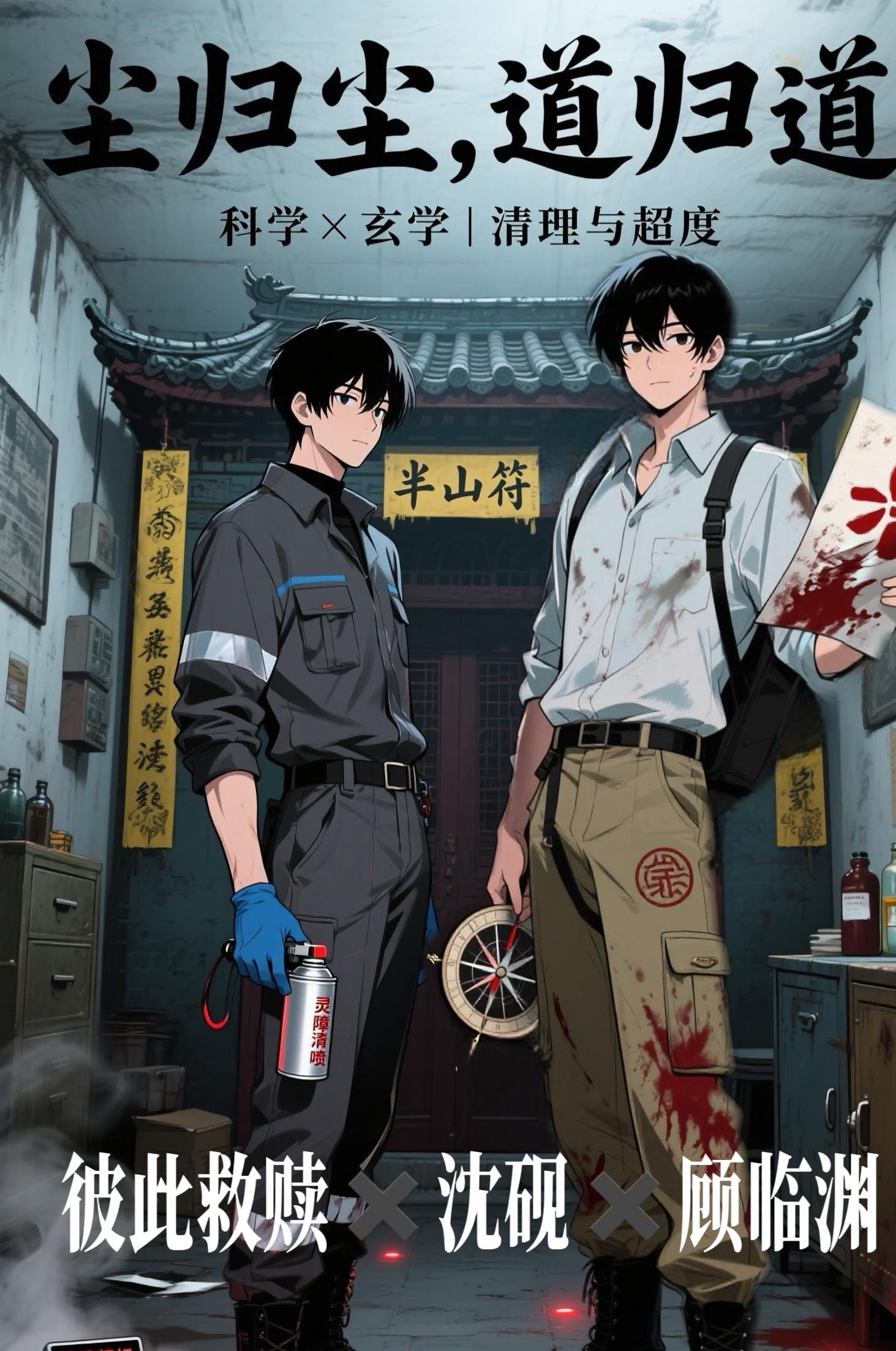 我的工作是清理死亡现场,直到我遇到了一个连“死亡”都能超度的家伙。沈砚,特殊现场清理师。他抹去血迹,分解污秽,用科学让死亡现场焕然一新。没人知道,他清理的不仅是物理痕迹,还有常人看不见的“灵障”——那些因强烈情绪残留、能扰乱人心的能量场。顾临渊,被逐出山门的道家传人。他穿着工装裤,玩世不恭,却能用一滴血画符,超度亡魂,平息执念。业内视他为异类,因为他行事不羁,且总在破戒。一桩离奇的“密室死亡”案